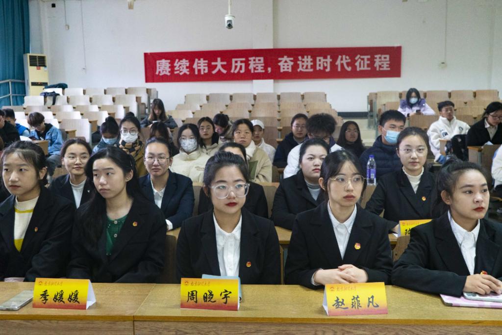 刘畅同学以问启思,她提出了从马克思主义行到中国化时代化的马克思主义行认识有怎样的深化和提升,为什么全过程人民民主是最广泛、最真实、最管用的人民民主等问题,启发同学们在今天的宣讲内容中找到答案。刘畅同学向大家阐明了二十大中的新思想、新观点、新举措,新在何处。从1949年毛泽东同志提出的“两个务必”,到今天的二十大,党又提出了与时俱进的“三个务必”;从毛泽东在窑洞里指出人民民主监督是跳出“其兴也勃焉,其亡也忽焉”的历史周期率的方向,如今我们党又给出了第二个答案,自我革命;从马克思主义行到现在基于国情提出是中国化时代化的马克思主义行,让同学们充分地感受到党始终牢记初心、自信自强、守正创新。她从十年间我们见证的中国共产党成立一百周年,中国特色社会主义进入新时代和完成脱贫攻坚、全面建成小康社会的历史任务,实现第一个百年奋斗目标这三件大事,到向大家讲解中国式现代化的五个特色建设富强民主文明和谐美丽的社会主义现代化强国的新战略谋划,同学们更深刻地体会到党始终在中国特色社会主义道路上踔厉奋发、勇毅前行。