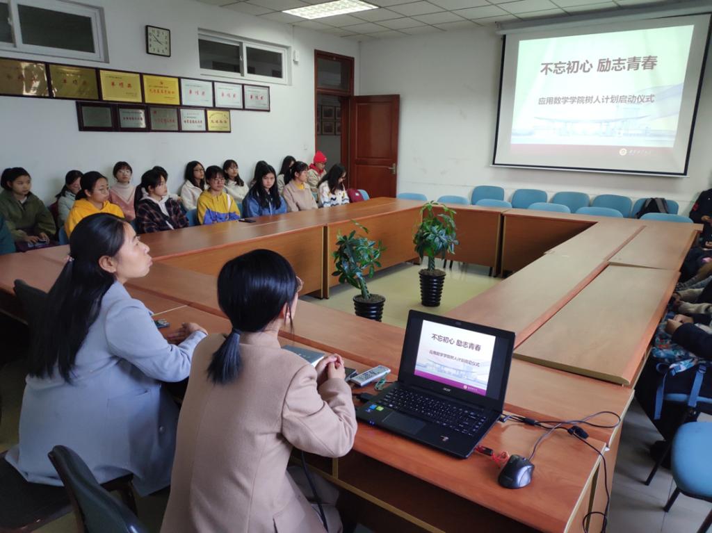 在德业楼534室开展“不忘初心,励志青春”树人计划启动仪式。党总支部副书记张杰老师、辅导员刘文川老师以及52名受国家资助的同学参与此次会议。