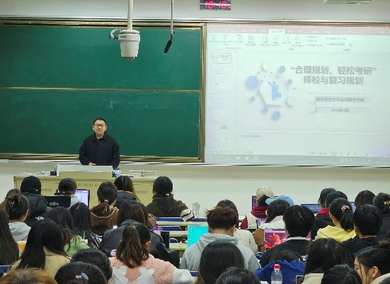 在仙林校区德业楼103教室举办“合理规划,轻松考研”考研规划指导讲座,邀请考研专业指导老师刘平平主讲。2021级同学参加本次讲座。