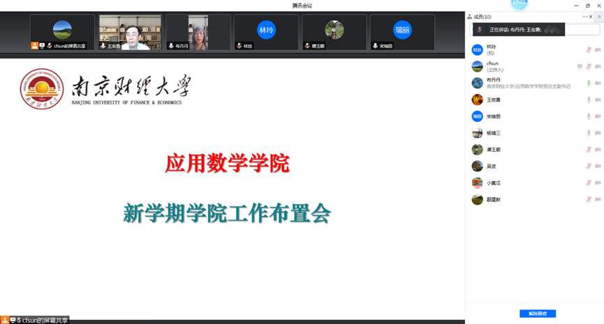 在线上召开新学期学院工作布置会。全体院领导、学位委员会全体成员及相关工作人员参加会议。会议由院长王宏勇主持。