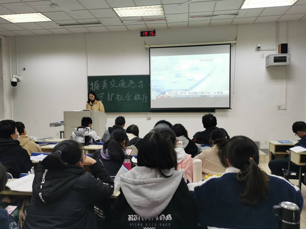 团委在德业楼101教室开展了安全教育系列活动——“摒弃交通恶习,守护社会秩序”。此次活动由王静怡同学主持,全体20级同学积极参与。