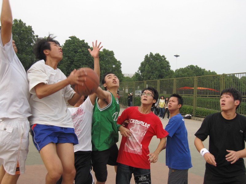 于中苑篮球场举行了大一对大三的篮球赛。球场上队员们都表现的十分出色,大家打得十分投入。虽然大一以35:54输给了大三,但同学们心态平和,本着友谊第一比赛第二的目的。