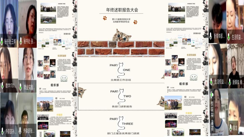 学生会准时召开第十六届学生会述职大会。大会在线上举办,全体学生会成员出席会议。本次述职大会对学生会2019至2020学年内的工作进行了总结与反思,并为下一届学生会的组织建立做了初步的准备。