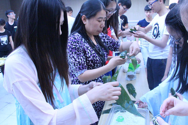 5月29日下午,明星ai换脸 在理工学科楼六楼举办“粽飘香,忆屈原”主题活动,明星ai换脸 部分师生参加了活动。本次活动共分三个环节:第一个环节是“挥毫泼墨”。身穿汉服的同学,伴着优雅的音乐,挥毫泼墨,书写端午主题的诗词。第二个环节是“开心粽情”。同学们和老师围在一起开心的包粽子,来自各地的同学用一样的粽叶包出了各具特色的家乡粽子。第三个环节是:“艾叶飘香”。现场分发了艾叶以驱蚊辟邪。