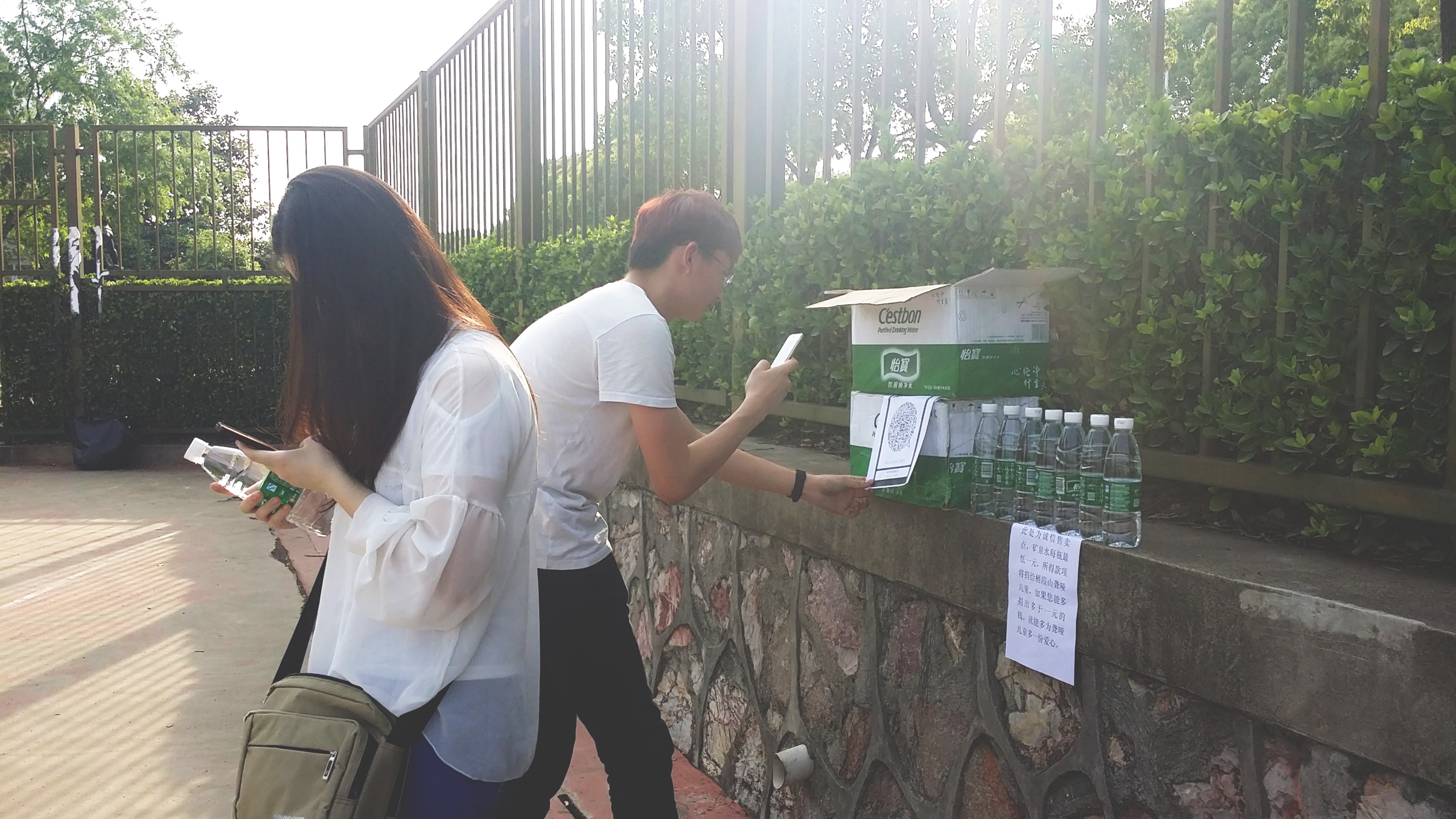 本次活动本着诚信原则,无人看管售卖点,同学们自觉取水并通过支付宝转账付款,在售卖点有文字告知购买者;“此处为诚信售卖点,矿泉水每瓶最低一元,所得款项将捐给栖霞山聋哑儿童,如果您能多捐出多于一元的钱,就能多为聋哑儿童多一份爱心。”在体育场上运动的同学们络绎不绝的到无人售卖点购买矿泉水,每个人都希望尽一己之力来帮助聋哑儿童。此次活动既可为运动的同学提供便利,也可为栖霞山聋哑儿童奉献爱心。