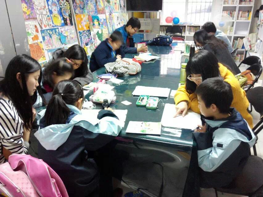每周五下午两点学生都会在三点半准时给学子辅导学生。孩子们都是锁金村小学三年级一班的学生。