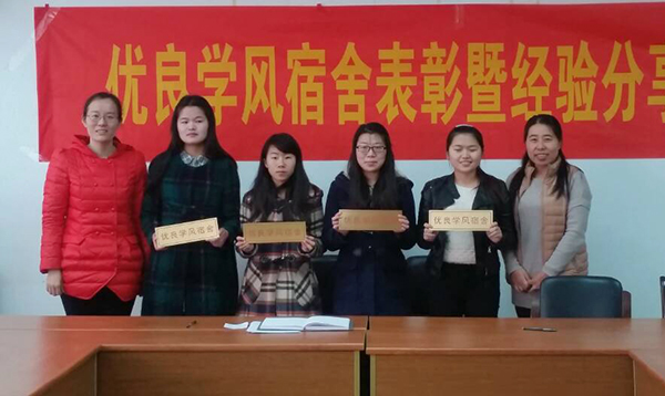 宋瑞丽副院长宣读了表彰决定。相关领导、老师为获得“优良学风宿舍”荣誉称号的学生代表颁发门牌。获奖宿舍学生代表先后上台发言,分享了舍风建设的经验。
