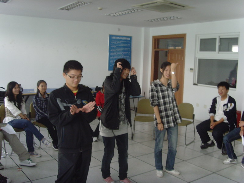 早上大家准时到达了指定地点,对接下来的游戏大家显得既兴奋又好奇。同样是以自我介绍开场,刚开始同学们明显有些放不开,自我介绍都十分简短,不过这没关系,并不影响接下来的游戏。第一个游戏是大风吹小风吹。由于有惩罚制度大家都有些紧张,精神比较集中,但游戏就有输赢,尽管都尽量避免犯错,但还是有人需要接受惩罚。大家都开始进入状态集中精力的做游戏,气氛也逐渐升温。
