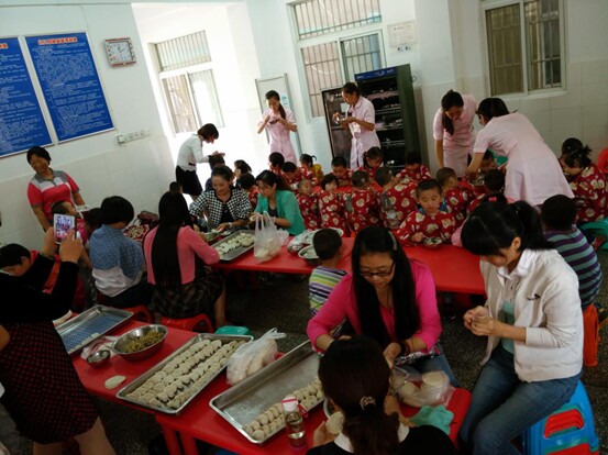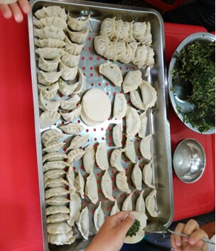 志愿者们在完成自己的工作后,热情的加入他们。有些志愿者并没有包饺子的经历,但通过学习,能够又快又好的包出满意的饺子。经过忙碌,孩子们吃上了热乎乎的饺子,各个脸上洋溢着幸福与喜悦。