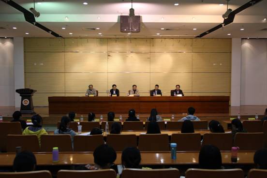 在开幕式的最后,张从军院长对王教授的讲座进行了深刻的总结。他根据王教授的讲座内容向同学们推荐了一些对同学们整体素养的提高有所裨益的书籍。例如,《古今数学思想》、《数学与哲学》、《数学与经济》。他引用了《数学与哲学》中的一句话,哲学是人们认识世界的望远镜,而数学是人们认识世界的显微镜。他也对同学们今后的数学学习提出要求。他说,学习过程中要注意体验和领悟,用心去领悟数学的韵味。