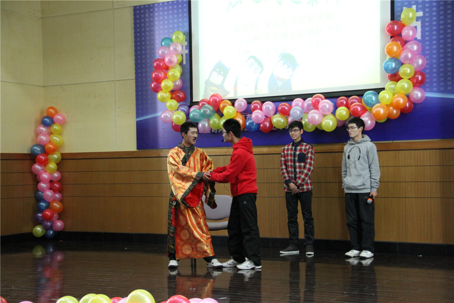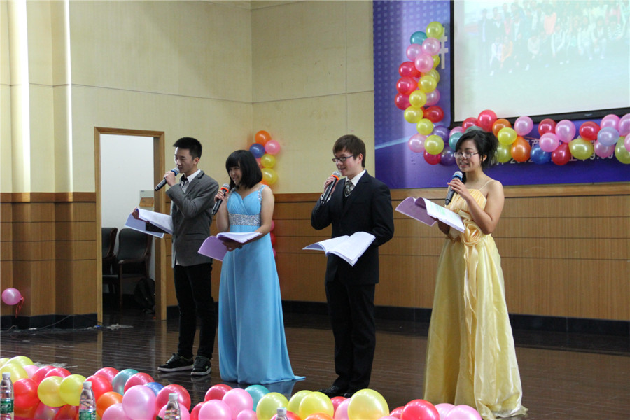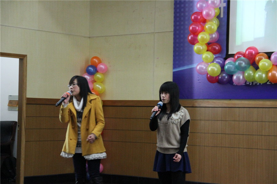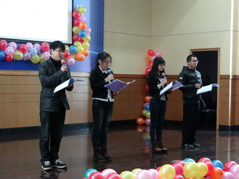 的前景,预祝同学新年快乐并宣布晚会正式开始。他的讲话获得了同学们的热烈掌声。