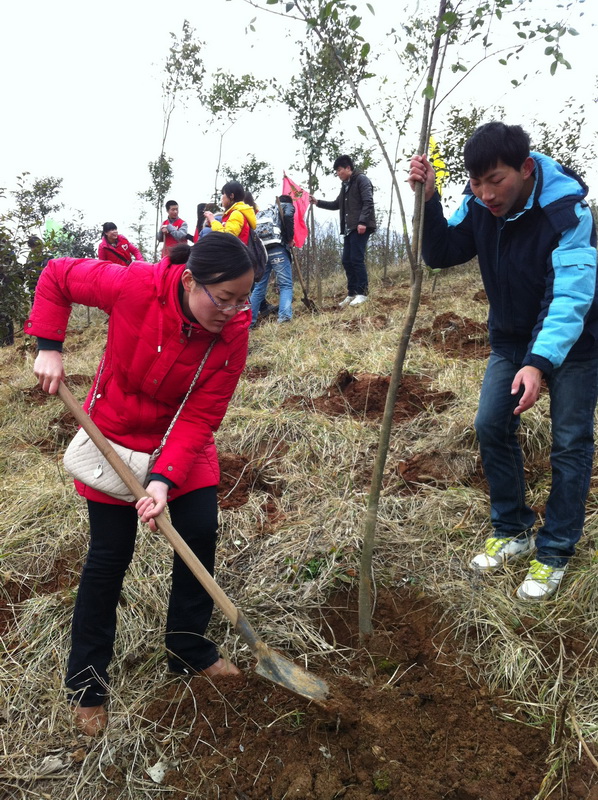 团总支和学生会组织了部分同学去植树,既体现了志愿者的精神,又为南京绿化做贡献,用实际行动来迎接青奥会。