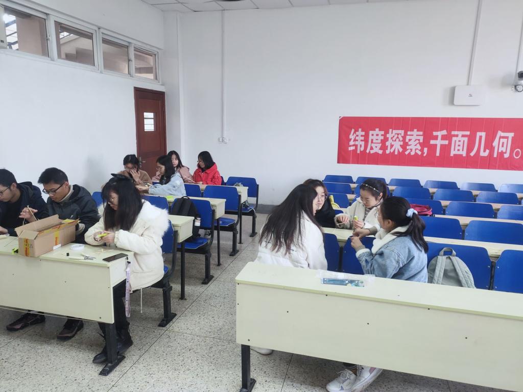学生会在德业楼108教室展开了“维度探索,千面几何”数学几何模型制作活动。