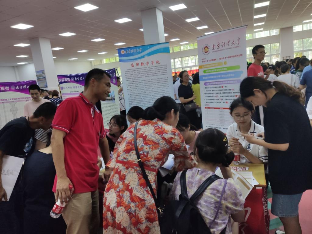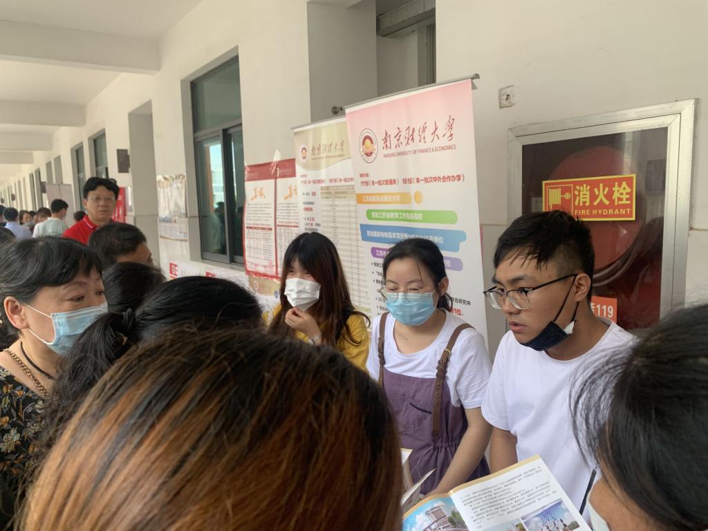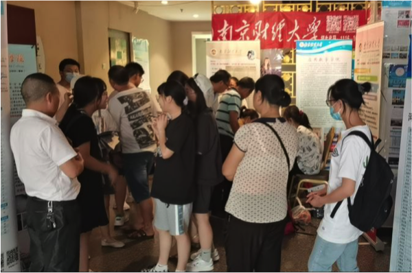 7月26日下午14点,团队成员赶到南通大学附属中学进行招生宣传。考生和家长们都十分热情地询问关于南财的报考情况以及热门专业,团队成员也给出了十分耐心细致的解答。