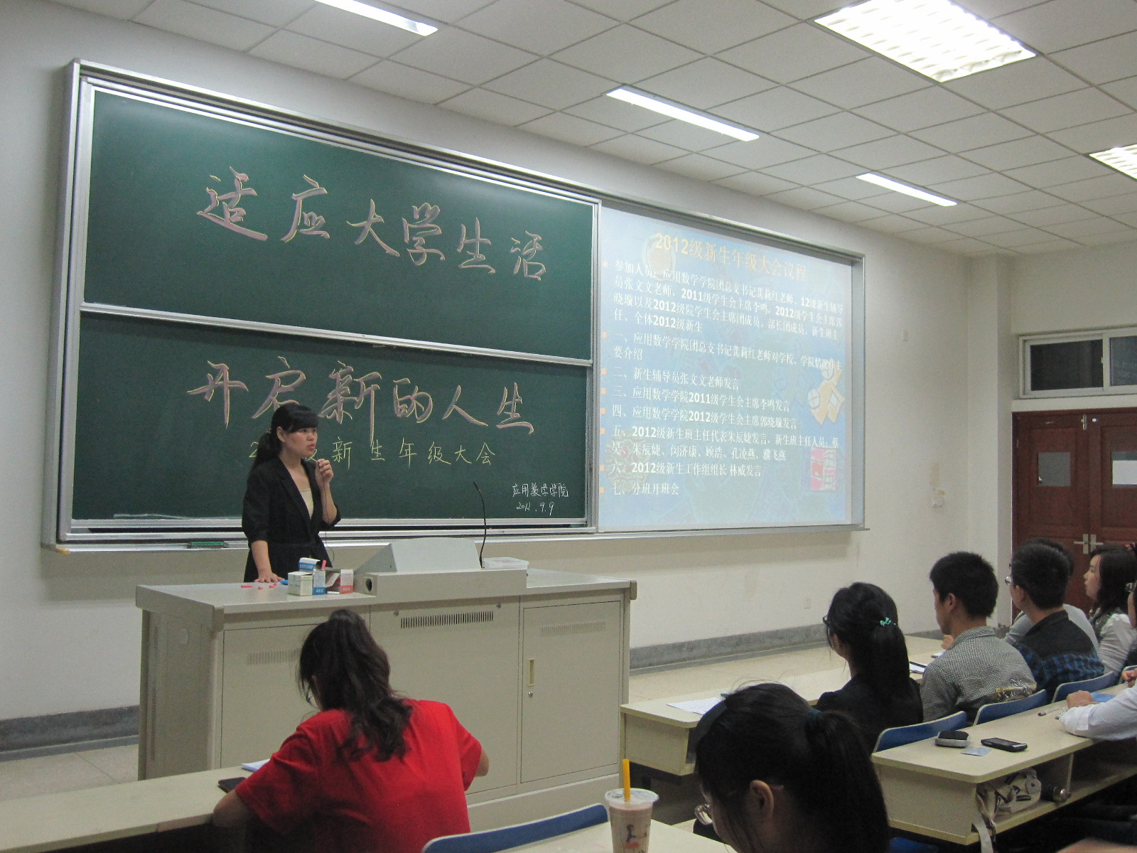 学工秘书、团总支书记龚莉红老师,辅导员张文文老师,2012届应数学生会主席团、部长团,新生班主任以及2012级所有新生参加了本次会议。会议在和谐友好的氛围中展开。