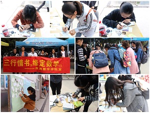 爱,只用三行字来表达,这便是“三行情书”。不论亲情、友情或是爱情,都可以用这三行情书来表达。本次活动与传统的三行情诗不同,参赛作品要求用数学的语言来表现。活动吸引了各院学生参赛。比赛现场,参赛同学挥毫泼墨,文采飞扬,在精美的明信片上写上数学版的情诗,有的表达对情侣的告白,有的抒发对朋友的祝福、对父母的牵挂以及对往事的追忆。精彩诗句获得了现场观众阵阵掌声,如“你是π,永远只能接近,去无法达到。”“微分了忧伤,积分了快乐,我要和你追随黎曼最初的梦想”。 经过评比,最终陈梦岩等10名同学获得“十佳作品”奖。