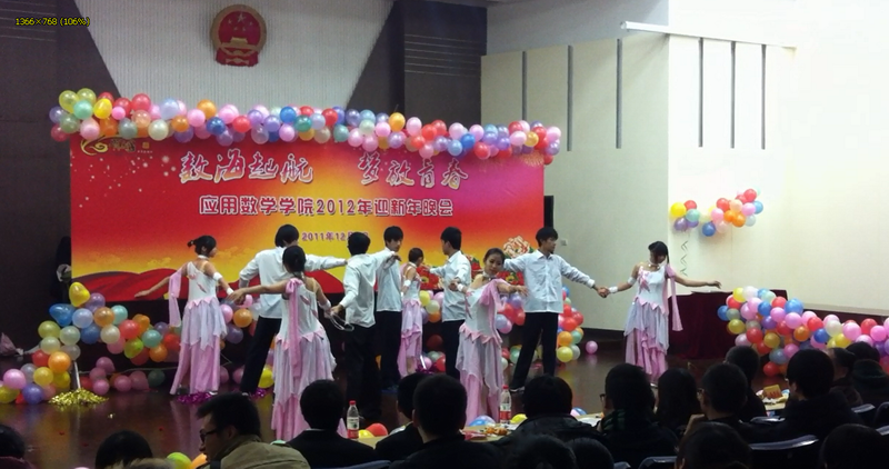 于是在2011年12月1日,终于迎来了我们进入南财以来的第一个迎新年晚会。整个会场,从舞台布置,到灯光,音响的控制,都是由我们自己完成的。晚上六点,晚会正式开始。