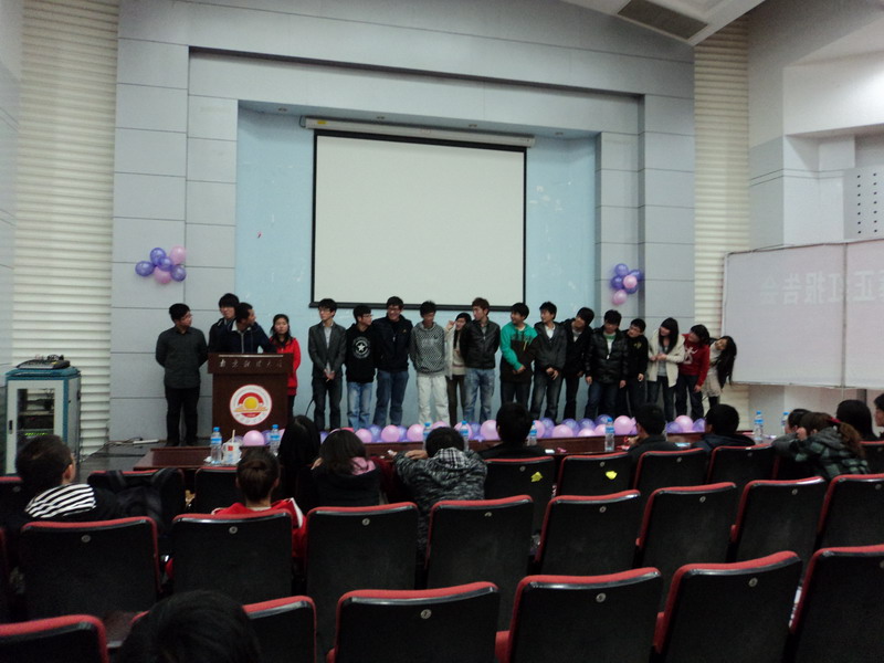 的王灿同学,为我们带来了一首刘德华的歌,第一个上场的不利条件,依然没有掩盖住他实力派的唱功,很快把在座的每一个人带入了音乐的氛围中。第三位选手是来自朝鲜族的姐妹花,她们为我们带来了一首韩文歌曲《因为是女子》,给我们带来了耳目一新的感觉。四号选手许丹峰同学为我们带来了一首《世界末日》,给评委留下了深刻的印象,更是点评他音唱得很准,大家都为他热烈地鼓掌,对他接下来的表现更是期待万分。十号选手是我们唯一的女选手(除三号组合外)郭莉莉同学,虽然她偶尔显出了对于歌词的生疏,但是我们依然对她敢于上场表现自己的勇气报以热烈的掌声,虽然莉莉是女生,但她敢于战胜自我的精神丝毫不逊于任何一个男生。最后上场的12,13号选手,王伟和赵元琨同学把整场比赛推向了高潮,他们的精彩表现和强大的后援团,让现场欢呼一片。