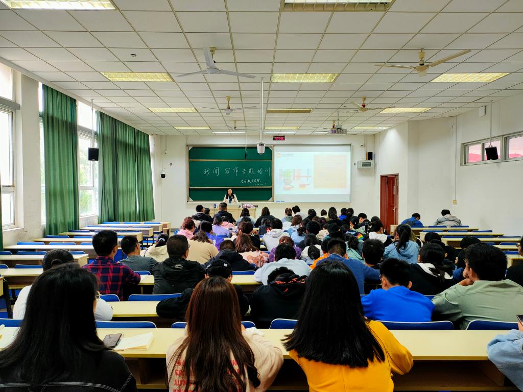 新闻网栏目设置,对其中的南财要闻、校园动态、学术经纬和专题栏目的刊登内容、写作方向及投稿的注意事项做了详细的讲解。其次,施主任介绍了新闻的写作规范,提醒同学们注意标题、新闻要素等内容的撰写,重点介绍了消息、通讯和特写三种新闻类别的模板,并结合以往新闻案例深入浅出地讲解了新闻各段的写作要点、写作技巧以及注意事项。随后,施主任对外宣写作的相关内容进行了介绍,通过对相关外宣稿件的分析,指出了新闻策划的时间点,并对外宣标题,导语等方面的要求做了讲解。最后,施主任重点介绍了通讯新闻中的人物通讯和事件通讯,并介绍了两者的构思、采访和修改的大致思路及其具体做法,同时给同学们展示了优秀的范例,让同学们对通讯新闻写作有了更直观的了解。