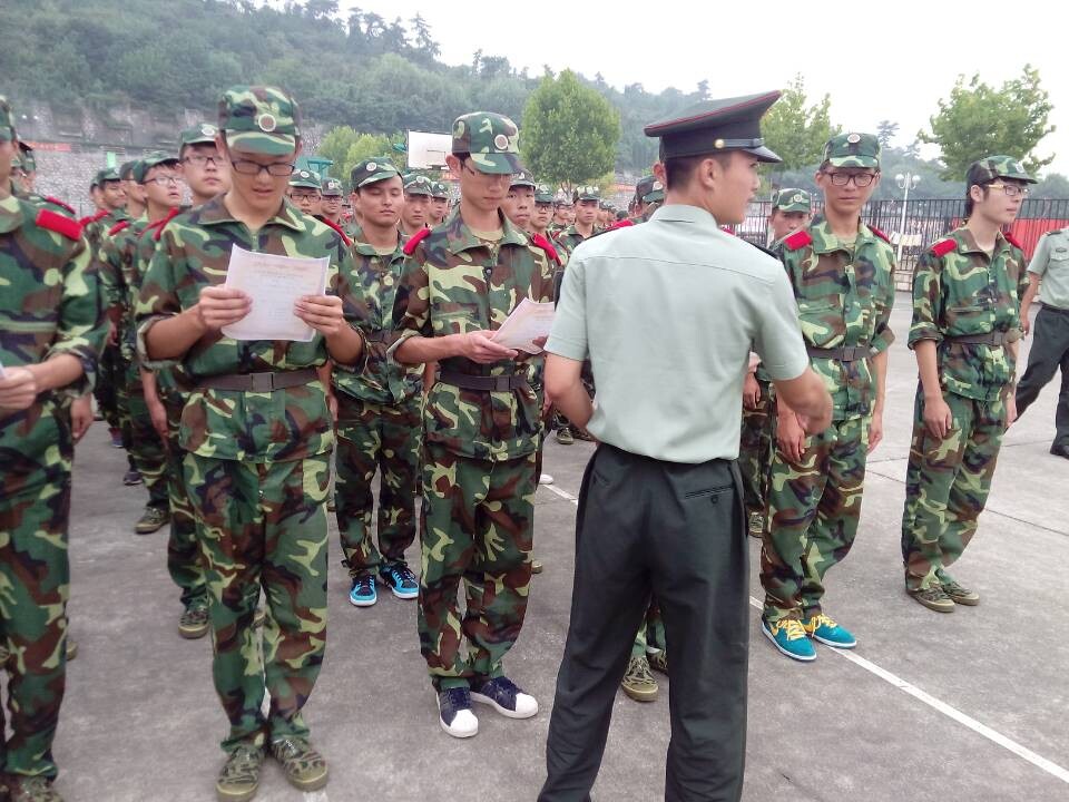 也给2014级新生在军训中就下达学习的“军令状”,通过军训教官的手给新生颁发“军令状”。军人手中的“军令状”代表的是神圣的使命,由教官亲手颁发更是象征着严肃认真的任务,同学们一一接过,小心翼翼地填写。