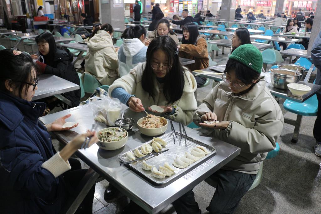 当天晚上,服务维权中心的负责人准备了馅料、饺子皮等材料,并将碗筷摆放整齐。同学们齐聚食堂,摩拳擦掌、跃跃欲试,并自发地分成了三四人一组,围坐在一起,充分发挥着自己的动手能力,包出了各式各样的饺子。在同学们的欢声笑语中,一个个大小不一,形状各异还镶嵌着不同花边的饺子很快就填满了整个盘子。在食堂工作人员的帮助下,热腾腾的饺子很快就呈现在了大家面前。配合着美味的酱料,同学们迫不及待地拿起碗来品尝着自己亲手做的成果,滚烫的饺子温暖的不仅是胃,还有同学们的心。
