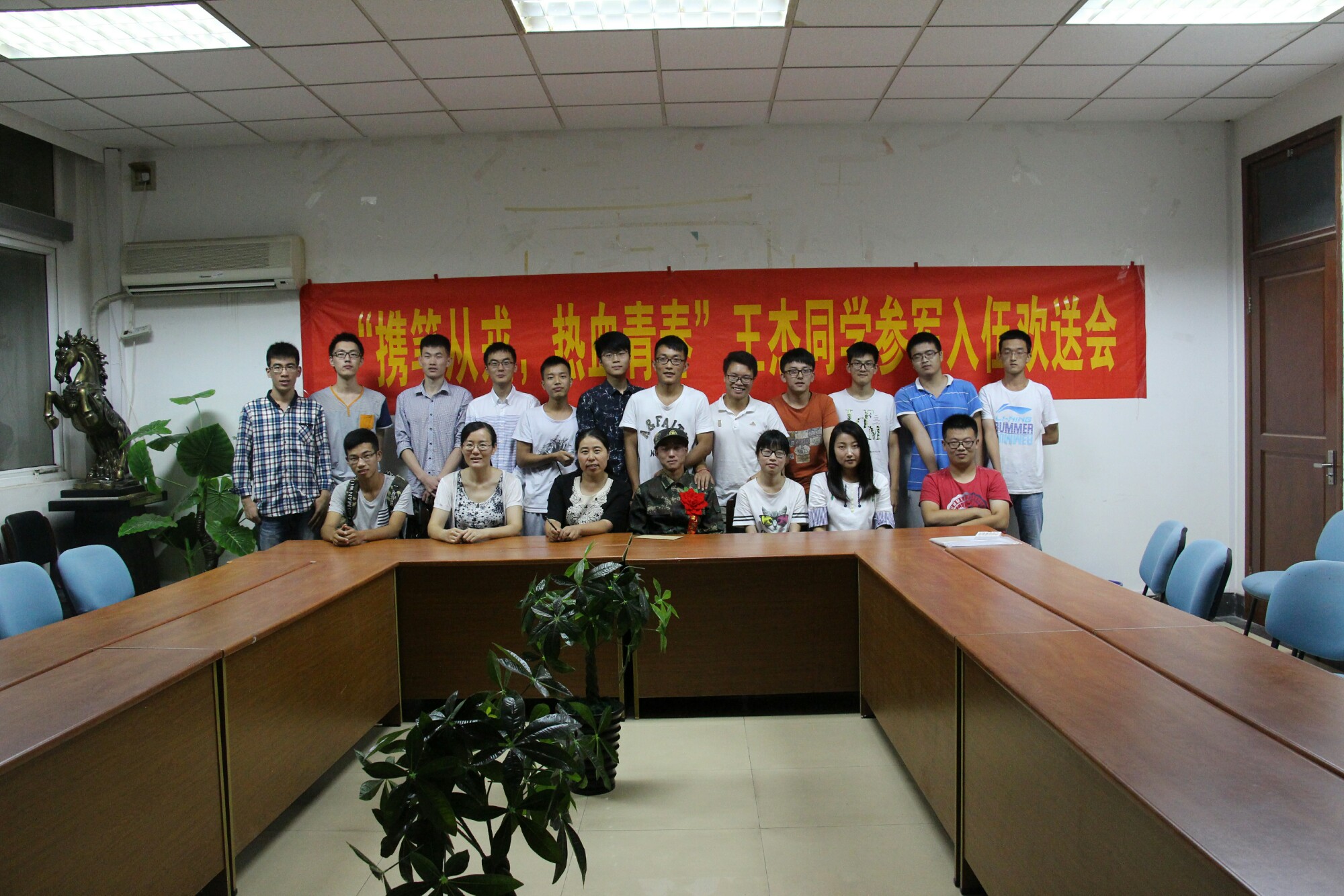 举办“携笔从戎、热血青春”参军入伍学生欢送会。学院党总支副书记张杰老师、分团委书记、学工办主任张文文老师,学院的部分学生参加了欢送会。
