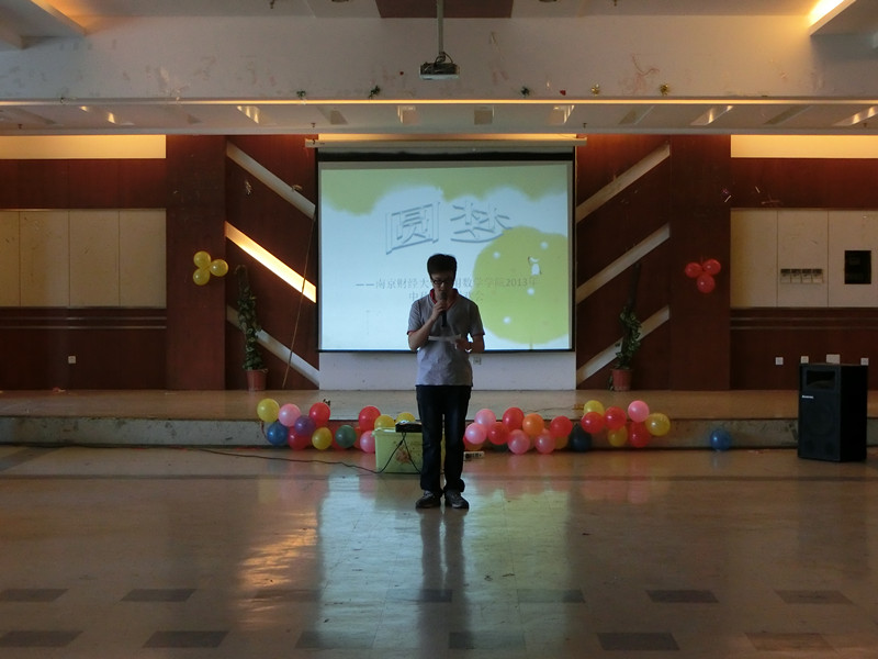 学生会举办的“圆梦”迎新中秋联欢会于19日下午两点在大学生活动中心多功能厅举行,新生军训教官、学院学生会成员及13级全体学员参加观看。