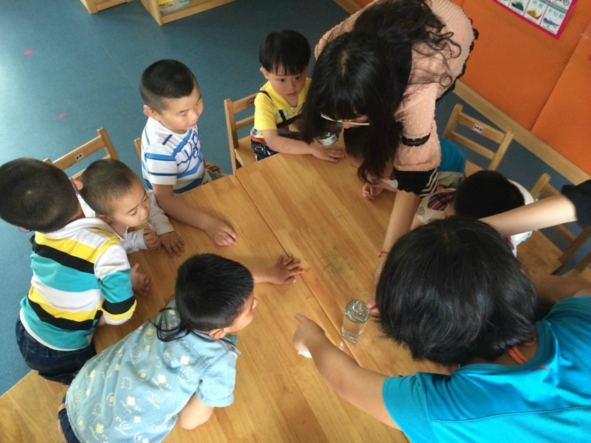首先,我们做的是鸡蛋在盐水中浮起来的实验,小朋友对鸡蛋很感兴趣,也对盐很感兴趣,为了让下朋友感受盐的味道,我们让他们都尝了一点,大家都“吃”得很开心。当我们把鸡蛋沉入清水中,再放盐搅拌时,可爱的孩子们还很配合的喊加油,鸡蛋最后也不负众望浮了起来,我们这些志愿者们也跟着孩子后面欢呼起来。