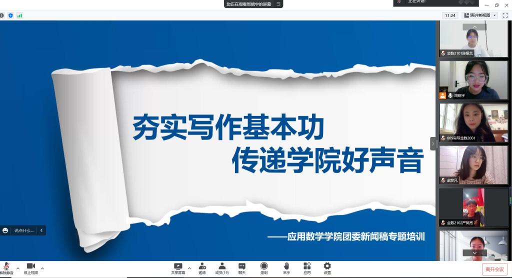 开展了以“夯实写作基本功,传递学院好声音”为主题的线上新闻稿专题培训交流会,会议由院团委副书记周晓宇主持,全体团委成员参与学习。