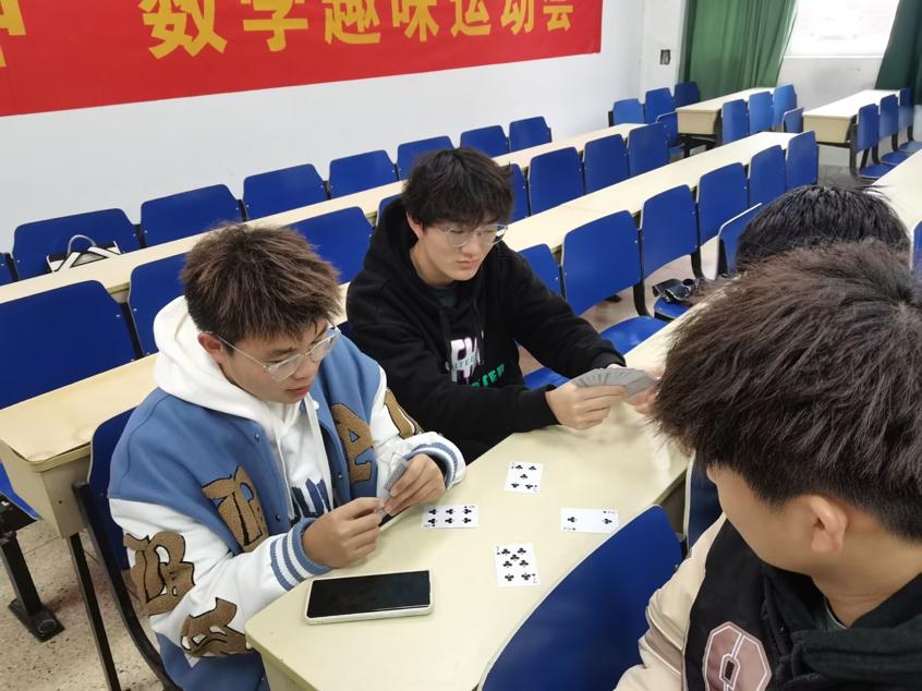 本次数学趣味运动会设置了孔明锁、数字华容道、桥牌、汉诺塔等多个项目。在桥牌项目中,同学们首先在裁判的带领下熟悉游戏规则,虽然有的同学是第一次接触桥牌,但是随着对桥牌规则的熟悉程度越来越高,大家聚精会神,紧张投入,充分发挥谋略和智慧,为最终的胜利而战。一旁的华容道项目更是精彩纷呈,如今的华容道将数学推算要素融入其中,同学们不约而同地研究起了它背后的数学原理和解谜技巧。此外,汉诺塔游戏中的递归算法和来自印度的古老传说也吸引了一众同学的参与,他们在游戏中开拓思维,碰撞出奇妙的火花。