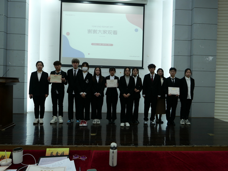主席团做工作总结。蔡鑫媛代表主席团总结了一学期以来学生会的工作情况,并介绍下学期的工作安排。她肯定了本学期活动开展的高创新度和高参与度,也分析指出了工作中存在的不足。各中心负责人作述职报告。学生会各中心负责人向大会和主席团作述职报告,他们结合学生会重点工作和本部门职能,系统回顾了前一个阶段的工作,总结经验,补足短板。表彰颁奖。大会对优秀志愿者和工作中心进行表彰。对外交流中心李天妍、素质拓展中心袁飞、综合事务中心卜卓远、媒体融创中心何晓雅、服务维权中心肖智洋、学业发展中心丁越获优秀志愿者称号;服务维权中心、综合事务中心、媒体融创中心分别荣获述职第一、第二和第三名;对外交流中心获最具吸引力中心称号,学业发展中心获最具创新性中心称号,素质拓展中心获最具活跃力中心称号。