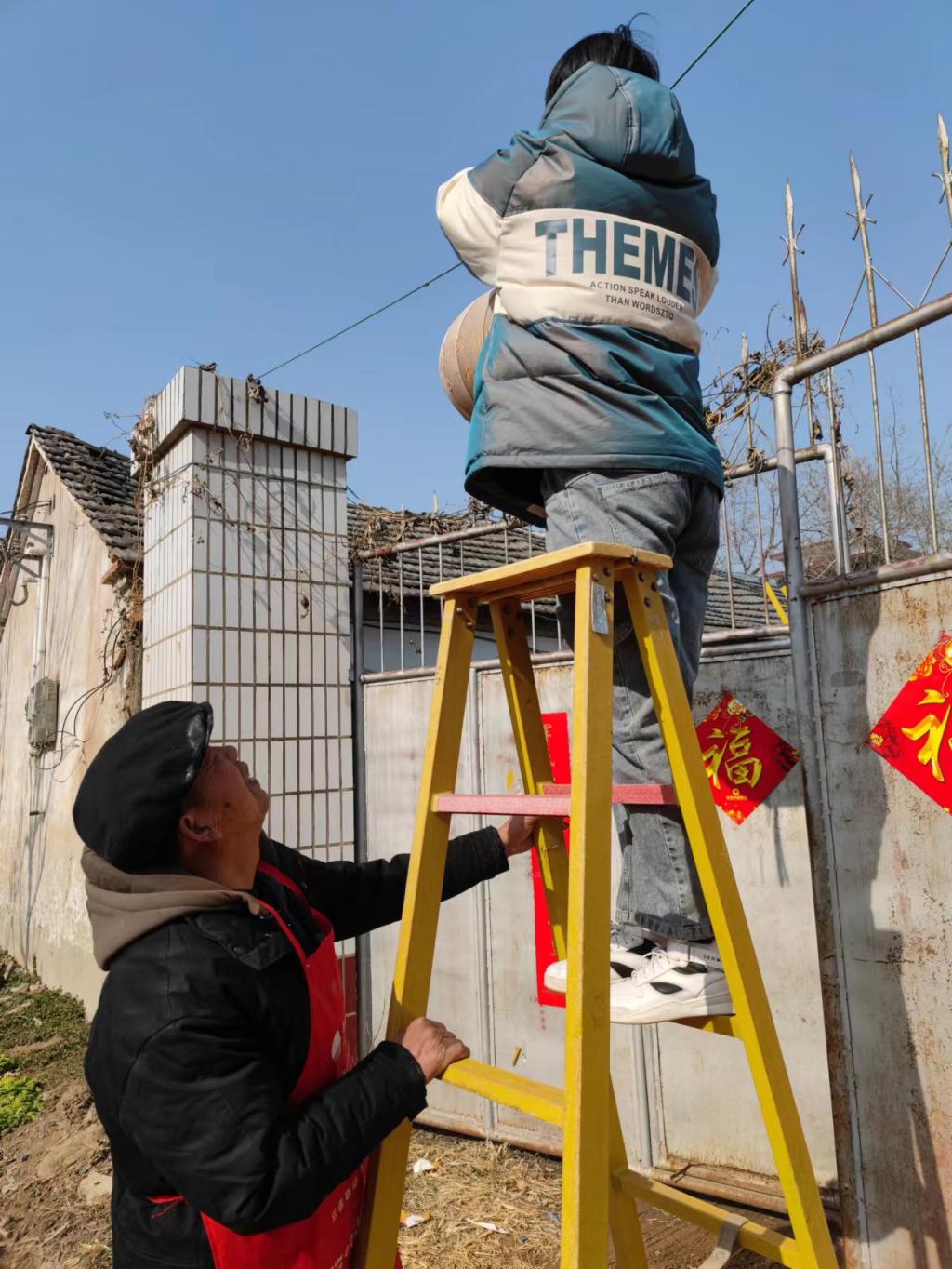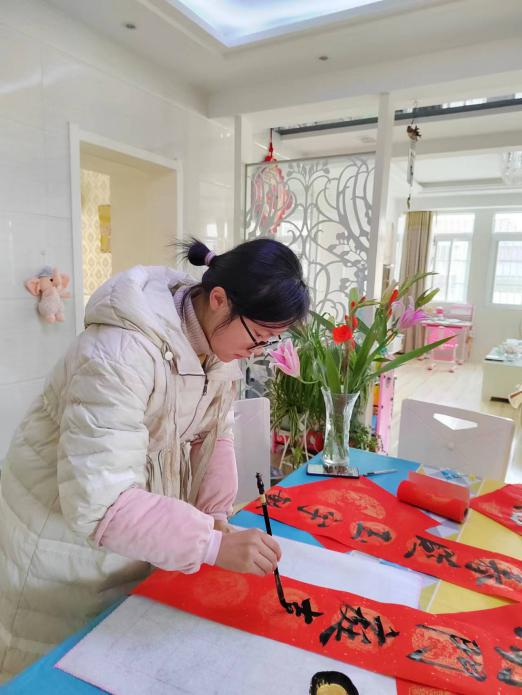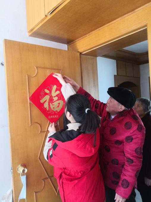 金数2201班朱美嘉同学与父母一道节前到爷爷奶奶家贴福字,共同迎接新年福气
