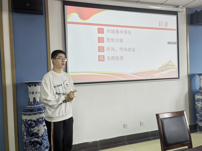 经前期申报,学院审核,全院共有5名候选个人、2个候选班集体进入答辩环节。答辩分为个人陈述、评委提问、总结评分三个环节。候选人分别从思想素养、学习成果、科技竞赛、创新创业、工作心得、实践经历等方面展开汇报。他们的发言有条不紊、沉着冷静,在规定的时间里充分展现了自身优秀的综合素养和取得的成绩。