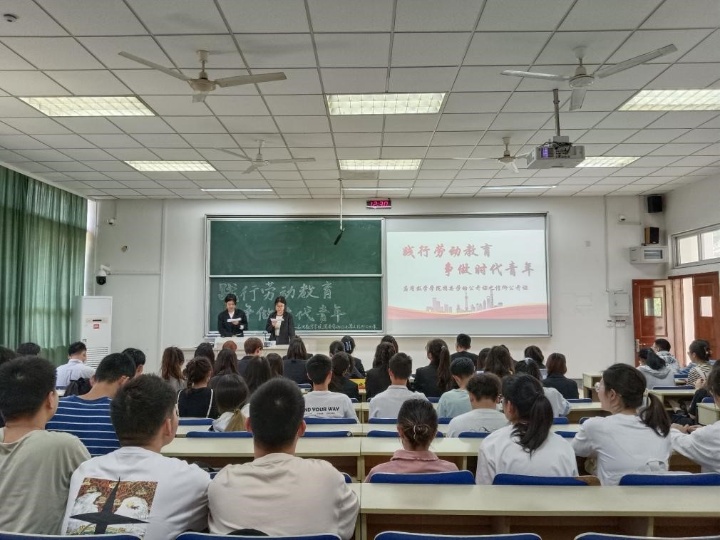 在仙林校区德业楼117教室举办“践行劳动教育,争做时代青年”信仰公开课暨党的二十大精神主题宣讲,院团委青志部部员李思宇和薛如昕主持,院团委全体成员参加