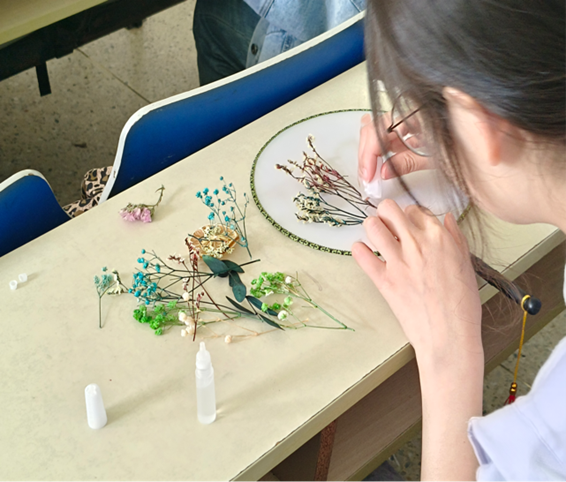 以干花团扇为载体,以手工制作为形式。此次活动在加强学生身心健康,丰富校园文化生活的同时,进一步普及劳动技能和创新意识,倡导环保和可持续发展理念,营造积极向上的校园文化氛围。