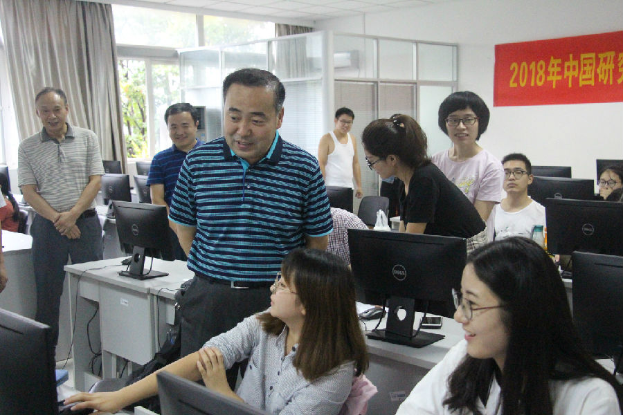 9月17日下午,副校长程永波在党委研究生工作部部长韩力争的陪同下巡视赛场,并看望参赛同学。他现场询问了同学们的选题内容、解题进度以及参赛感受,并就比赛组织情况、指导团队进度等与数学建模教练组的老师进行了交流。程永波副校长为参赛师生鼓劲,并预祝他们取得好成绩。