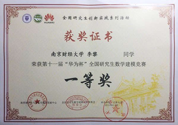 学子参加2014年全国研究生数学建模竞赛获奖名单