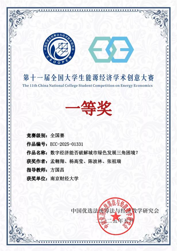 据悉,全国大学生能源经济学术创意大赛是由中国优选法统筹法与经济数学研究会主办、中国“双法”研究会低碳发展管理专业委员会执行的全国性赛事,于2023年3月正式进入中国高等教育学会发布的《全国普通高校大学生竞赛目录》。大赛积极响应国家“双碳”战略,致力于激发大学生创新意识,启迪创新思维,提升创造能力,打造碳中和人才培养的摇篮。