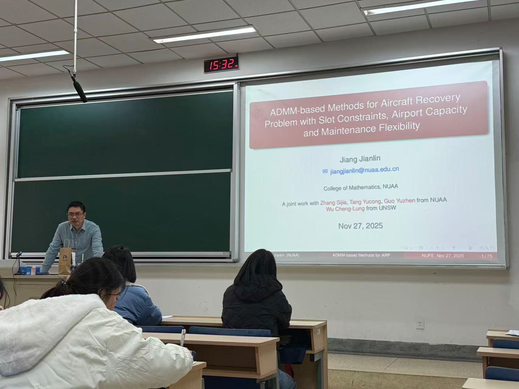 邀请,南京航空航天大学数学学院蒋建林教授在仙林校区德正楼111室作了题为“ADMM-based Methods for Aircraft Recovery Problem with Slot Constraints, Airport Capacity and Maintenance Flexibility”的学术讲座。明星ai换脸