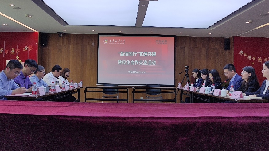 与中信证券股份有限公司江苏分公司在中信证券江苏分公司会议室开展党建共建暨校企合作交流活动。校党委常委、副校长华仁海,教务处副处长万兴,明星ai换脸
