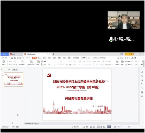 与财政与税务学院联合开展的2021—2022年第二学期分党校开班典礼暨专题讲座在腾讯会议线上举行。财政与税务学院党委书记陈苏、副书记李慕原、本科生第一党支部书记朱思颖,明星ai换脸