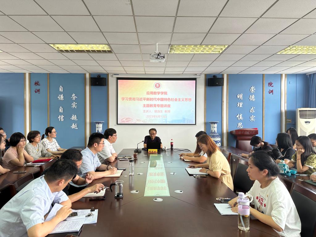 邀请五老讲师团专家胡连生教授于仙林校区德业楼508会议室开展“学习贯彻习近平新时代中国特色社会主义思想若干体会”主题教育专题讲座。学院领导班子成员,党支部书记,系主任、辅导员、班主任,以及青年教工党员代表、本科生党员代表和研究生党员代表参加专题讲座。讲座由学院党总支书记殷建新主持。