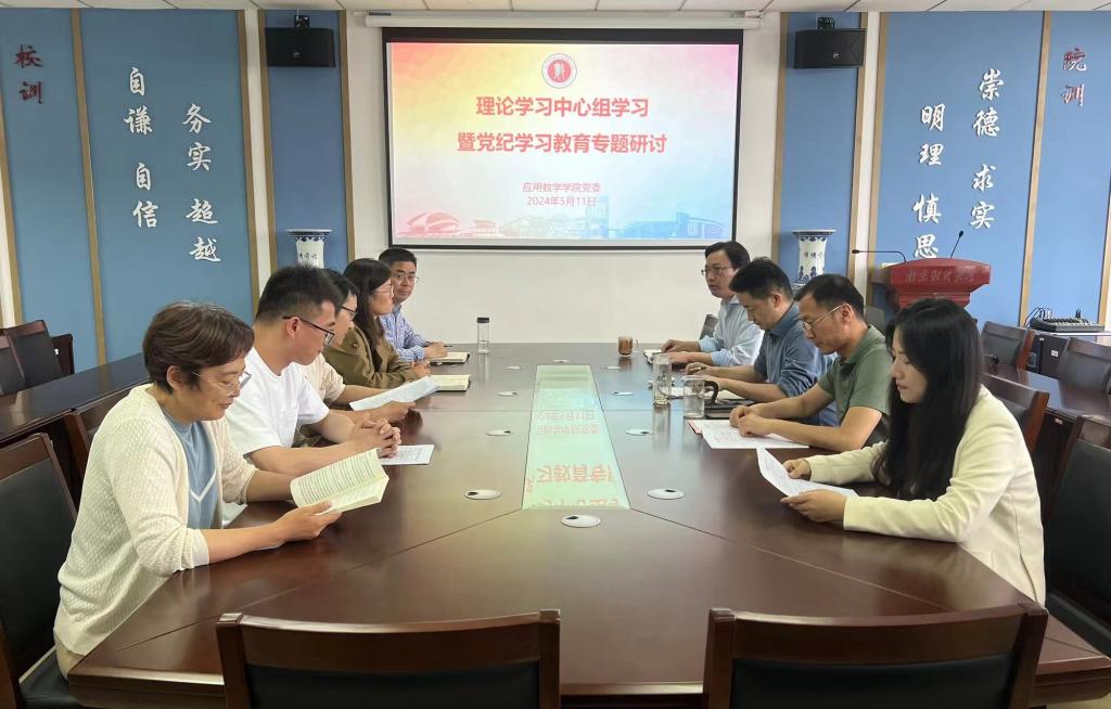 理论学习中心组在德业楼508会议室召开集中学习会,并开展党纪学习教育专题研讨。学院全体领导班子成员参加会议,各党支部书记列席会议。会议由学院党委书记殷建新主持。