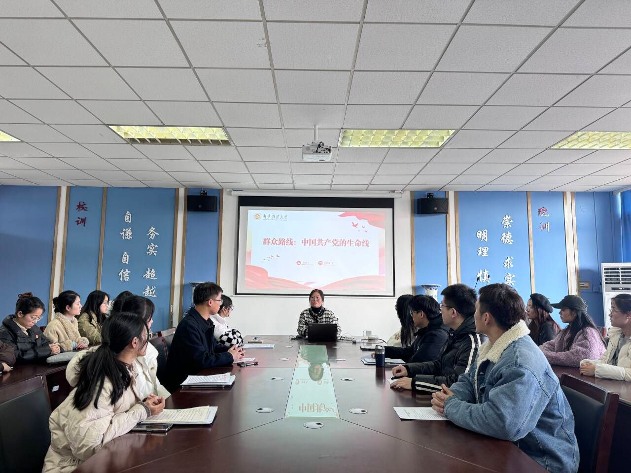 仙林校区德业楼534活动室为研究生党支部带来了一堂主题为“群众路线:中国共产党的生命线”的党课。
