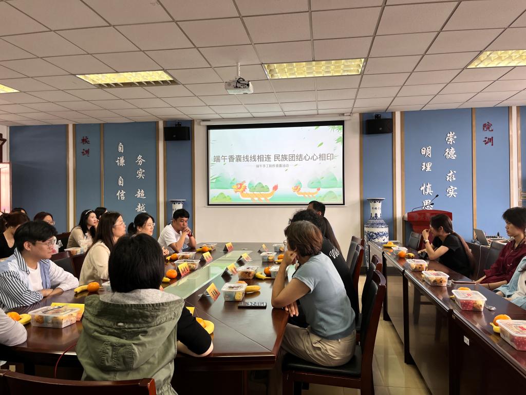 在仙林校区德业楼508会议室举办“端午香囊线线相连,民族团结心心相印”迎端午红石榴班手工制作香囊活动。学院教职工党员代表、研究生党员代表以及全体少数民族学生参加了活动。活动由学院党委副书记孙晓飞主持。