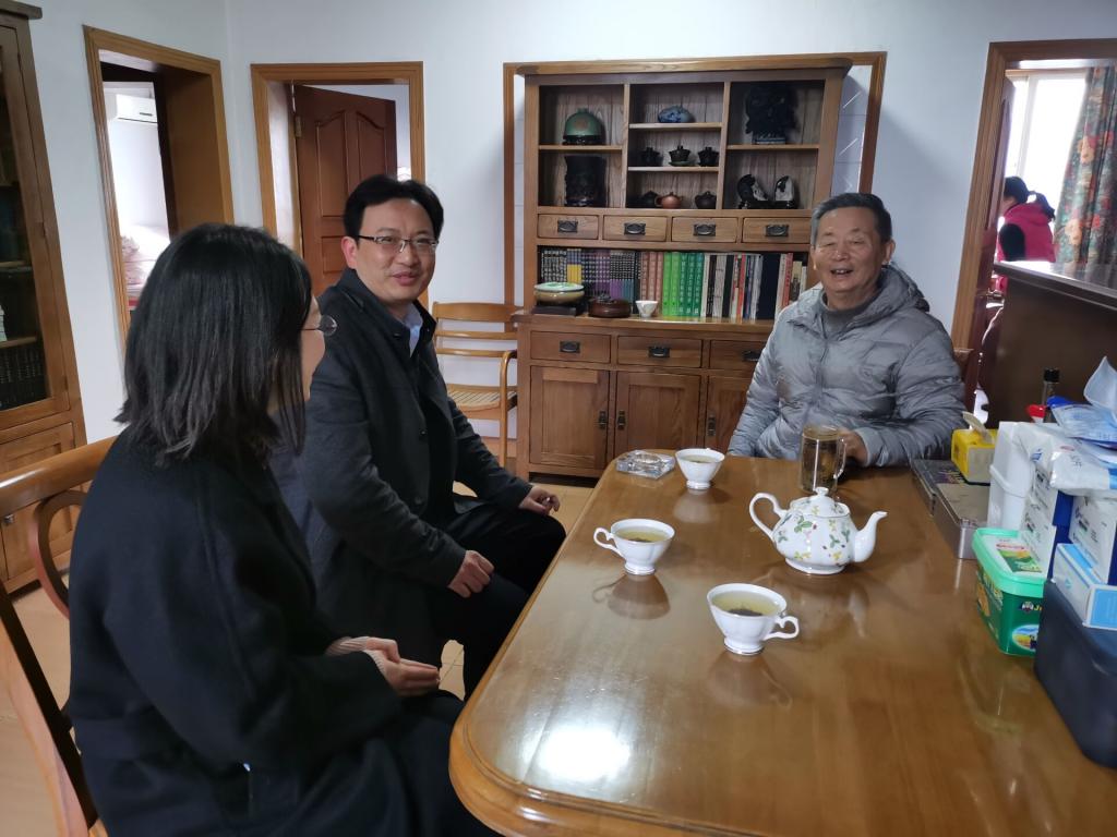 党总支书记殷建新、副书记布丹丹率队走访慰问了姚庆六、王水汀等离退休教师代表。