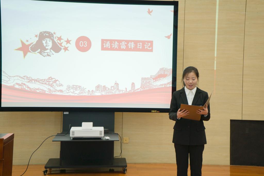 活动现场,学生代表对经典篇目进行了诵读。金数2201班朱美嘉同学的诵读给人留下了深刻印象,“螺丝钉虽小,其作用是不可低估的,我愿永远做一个螺丝钉。”逝去的是历史,感悟的是传承,雷锋精神将永驻我们心中。