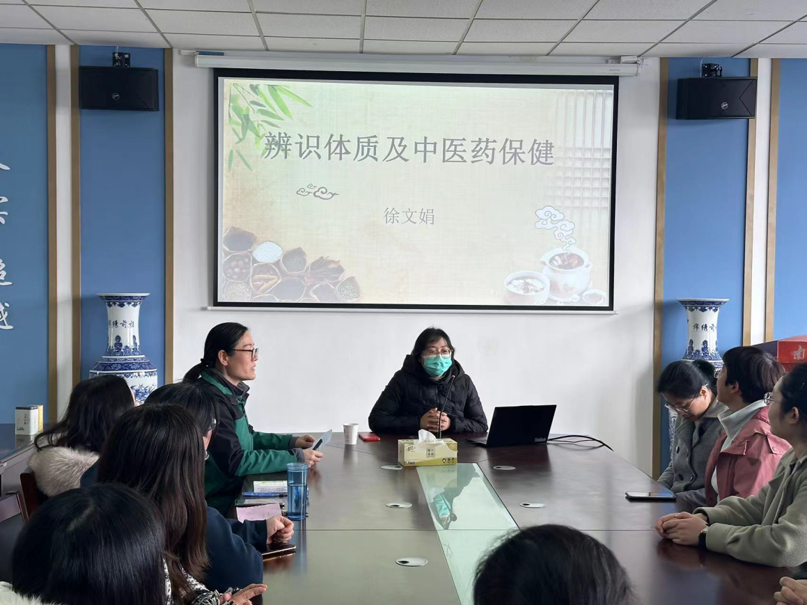 教职工文化生活,提高教职工生活质量,加强教职工之间的交流,营造积极的工作环境,3月7日下午,学院分工会在仙林校区德业楼五楼会议室举办教职工“三八”妇女节健康养生交流座谈会,并邀请到妇幼健康研究会中医协会委员,从事中西医结合临床工作近20年的副主任中医师全科医生徐文娟女士为学院女教职工作“辨识体质及中医保健”主题讲座。
