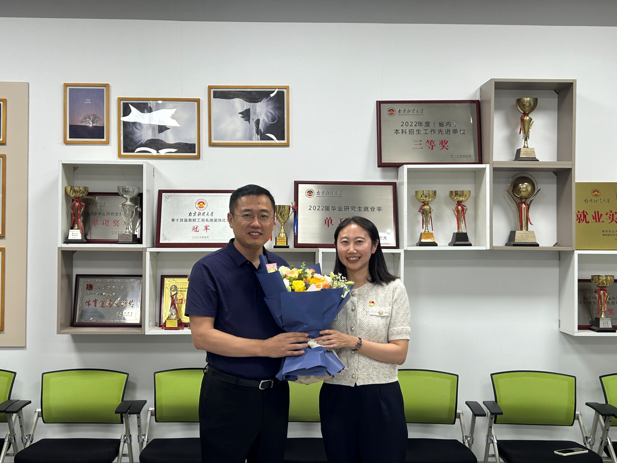 李迅、张鑫、温娇三位老师,送上鲜花、礼品和节日祝福,向他们默默耕耘、无私奉献、坚守育人一线和为学校作出的积极贡献表示感谢,并向全院教职工致以节日的祝福和美好的祝愿。
