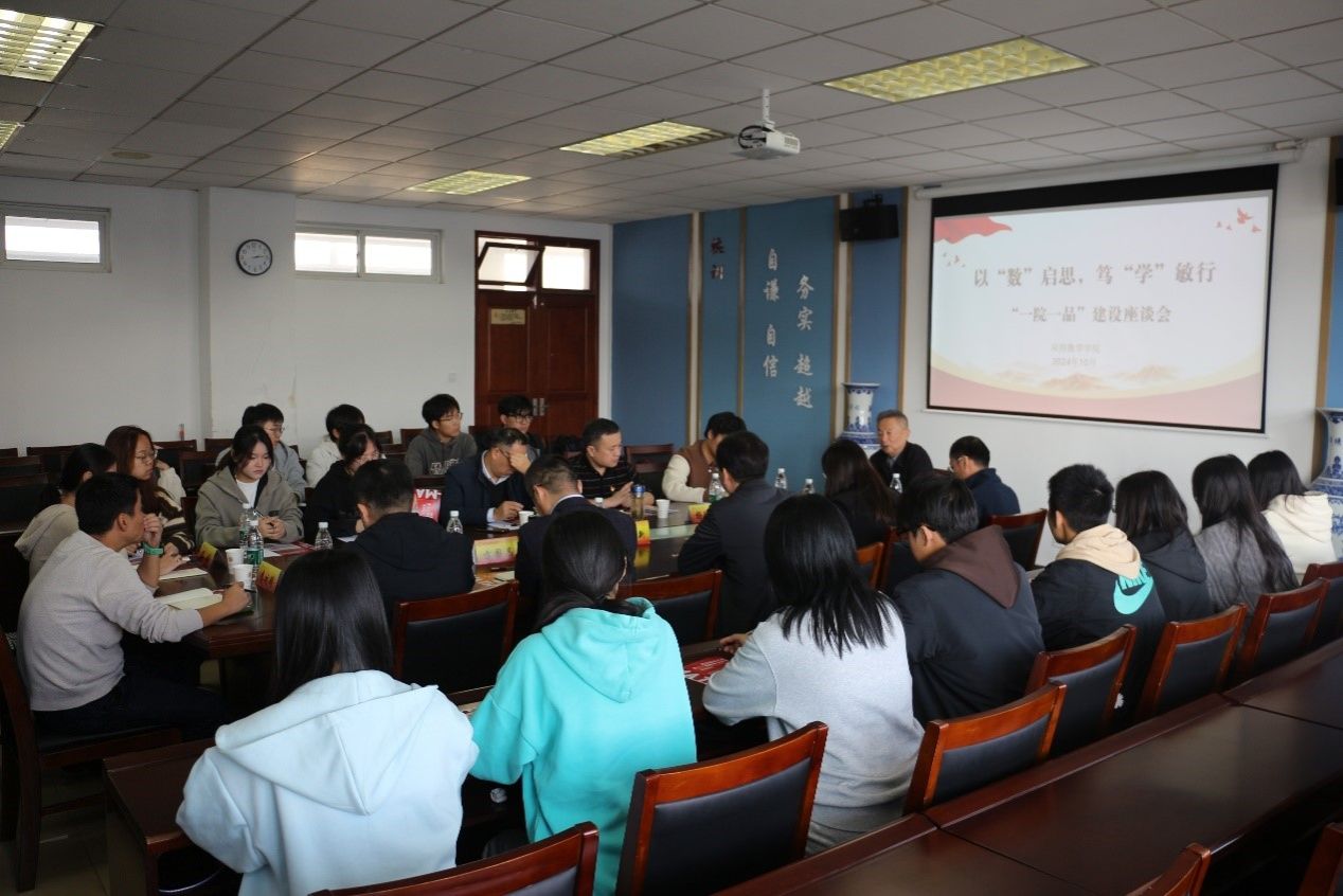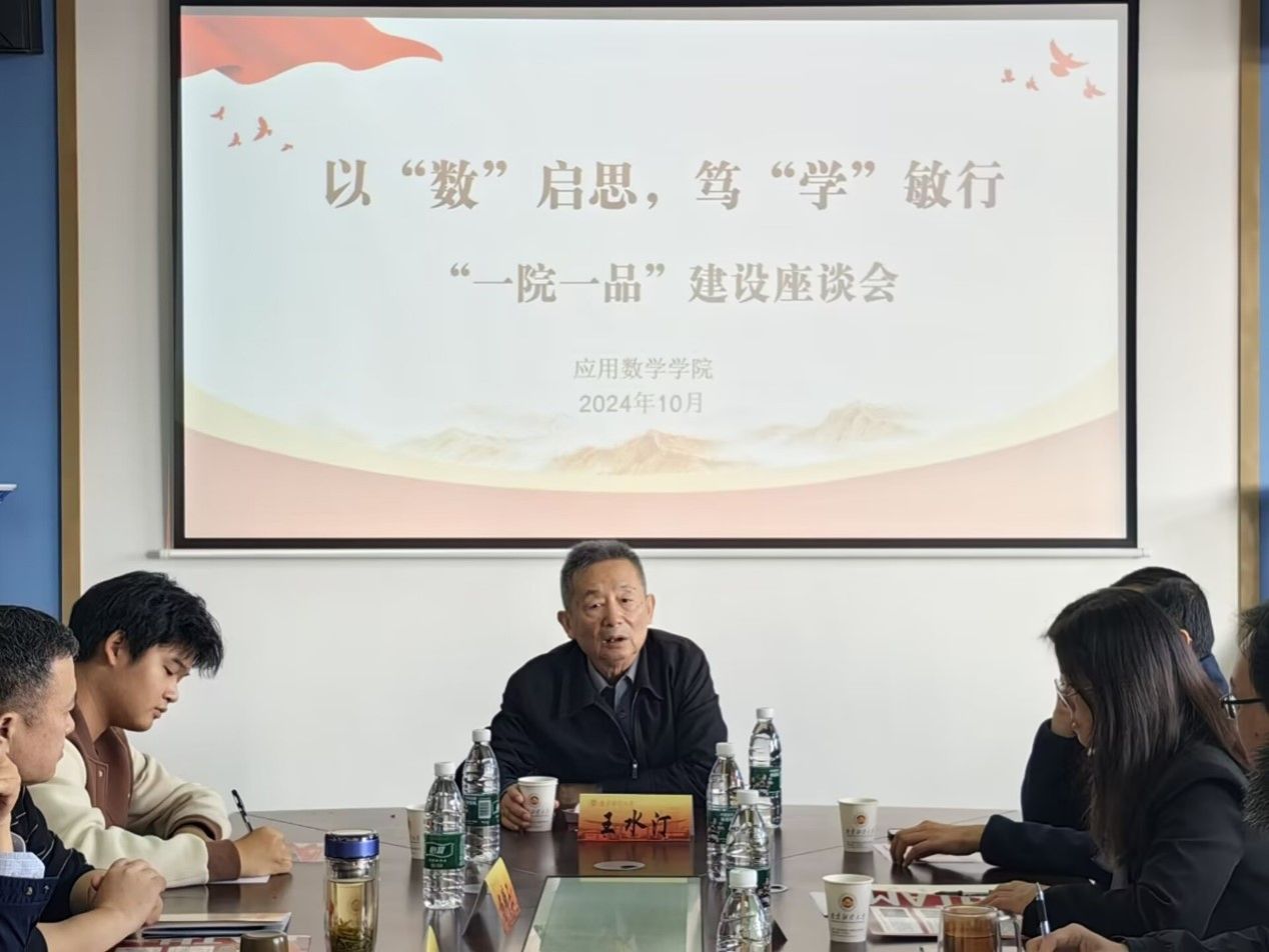 在仙林校区德业楼508会议室召开“以‘数’启思,笃‘学’敏行”为主题的“一院一品”建设座谈会。校关工委副主任、原副校长王水汀教授出席指导,学院党政领导,教师和学生代表参加座谈会。座谈会由学院党委书记殷建新主持。